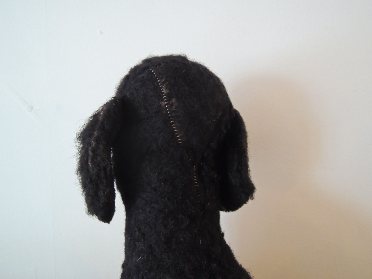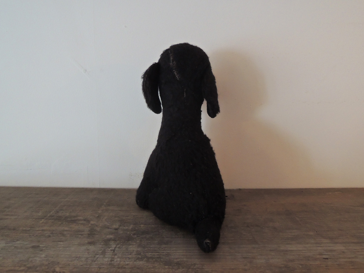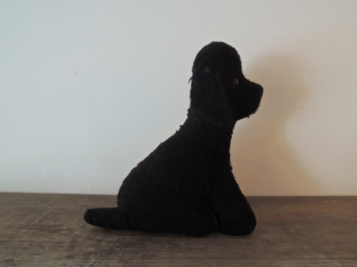 イギリスで出会った黒プーのぬいぐるみ。専門ではないので、これがイギリス製なのかドイツ製なのか判断できませんが、かわいい子だということはわかります。中には藁(わら)が詰まっていて、目はグラスアイです。鼻、耳、頭部など数カ所きれいに補修されています。